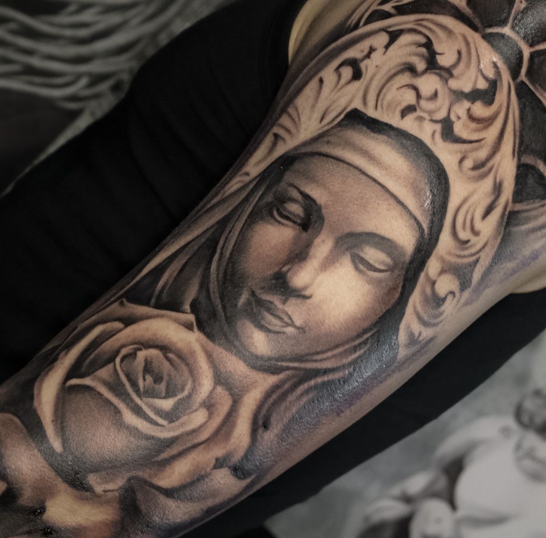 Chicano Black & Grey Tattoos | Bold lines, smooth realism, and powerful storytelling rooted in tradition.