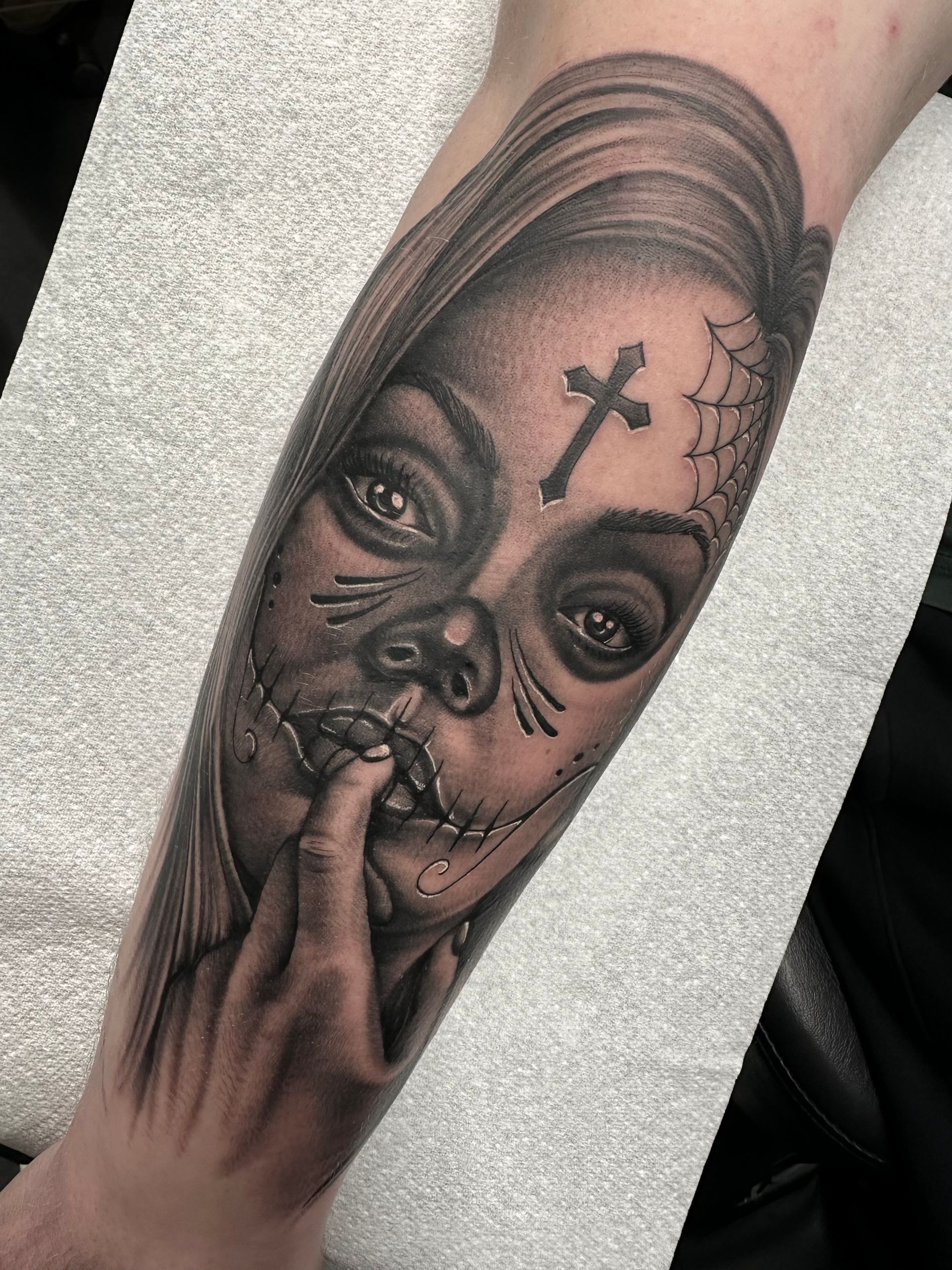 I’ve been tattooing professionally since 2009, building a career rooted in passion, precision, and a deep love for black and grey work. Influenced by classic Chicano culture, my style combines clean lines, bold contrast, and powerful, story-driven imagery. Over the years, I’ve developed a signature blend of smooth realism and timeless street-style elements, creating tattoos with depth, soul, and meaning.